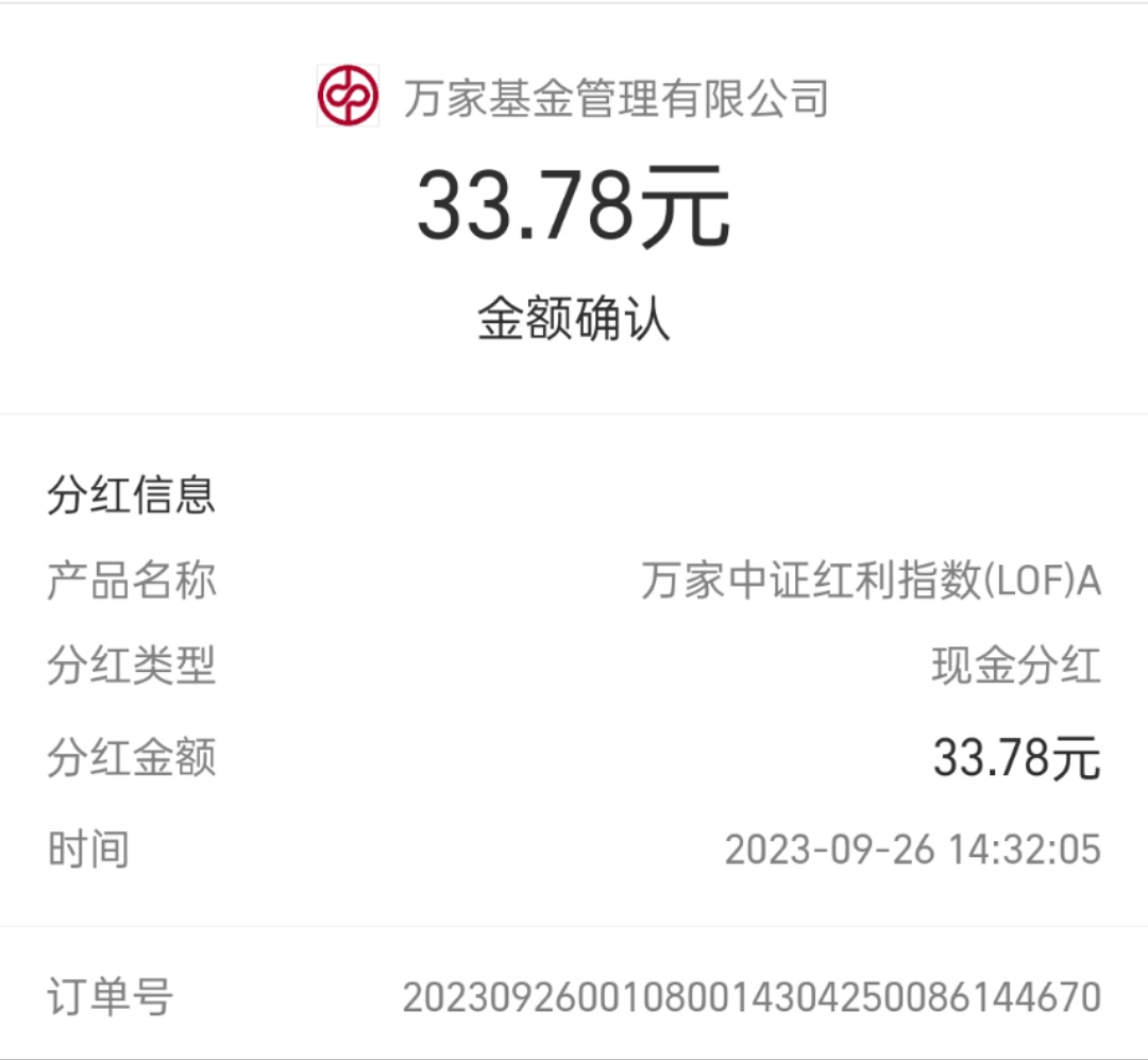 基金分红了 不错不错