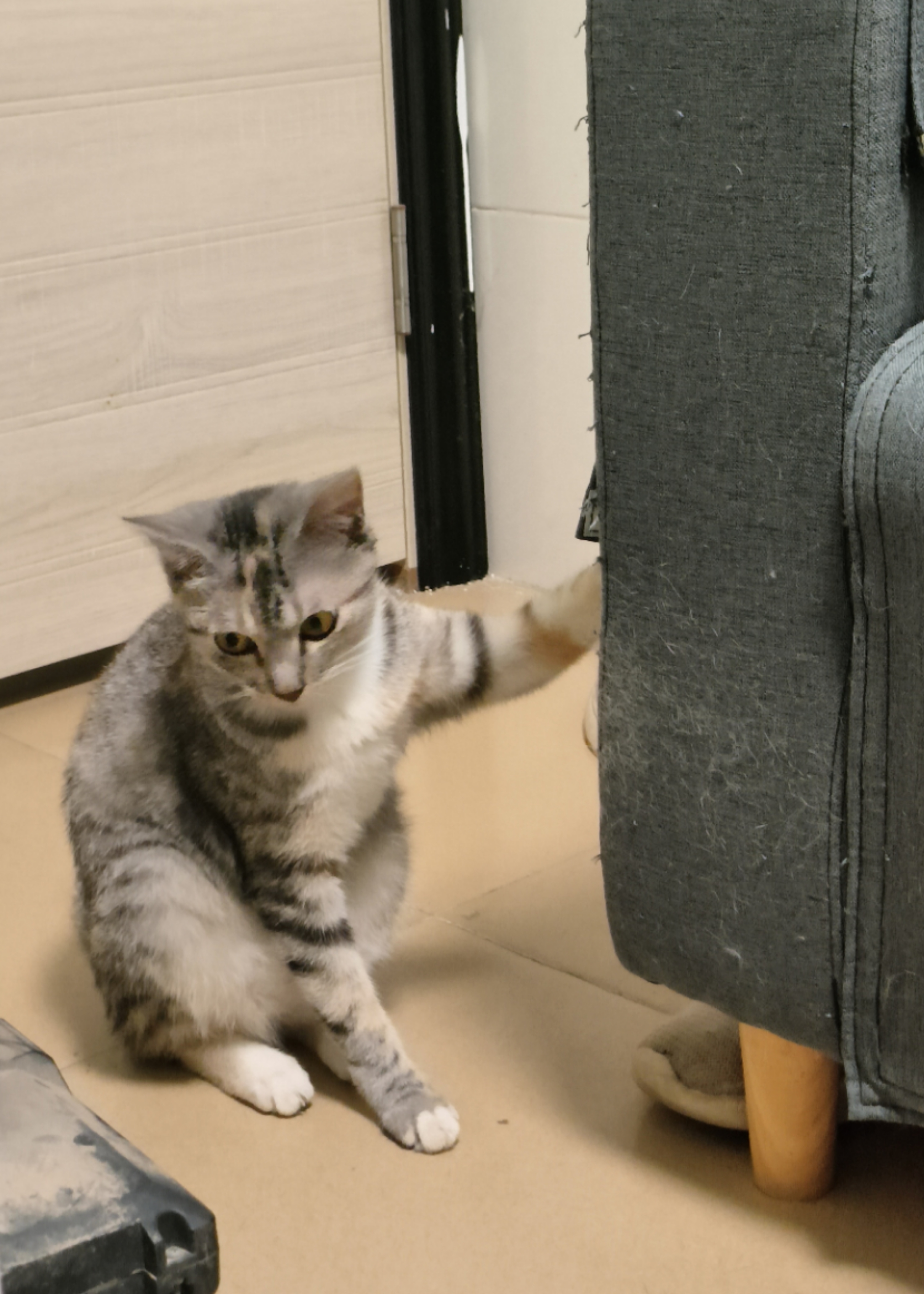 猫猫躺在出入口的地方不小心踩到它